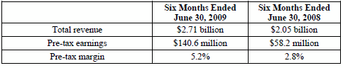 The following are summary financial and operational results for the operating segments of FNF for the three-month and six-month periods ended June 30, 2009 and 2008: