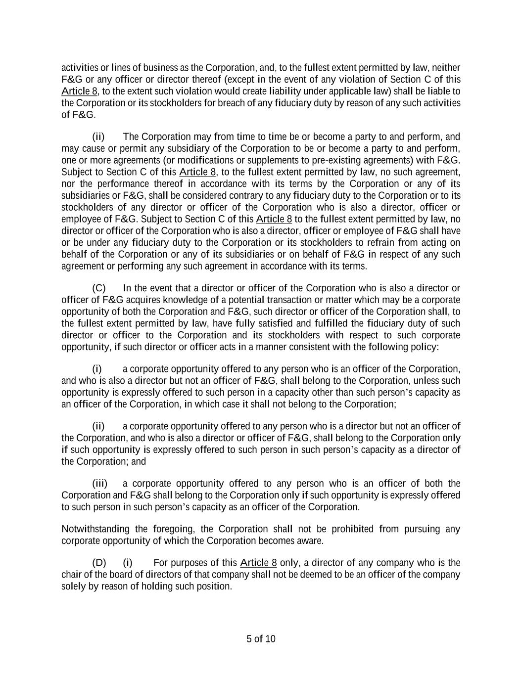 26 such provision held to be invalid, illegal or unenforceable) shall be construed (a) so as to permit the Corporation to protect its directors, officers, employees and agents from personal liability in respect of their good faith service or (b) for the benefit of the Corporation to the fullest extent permitted by law. * * * *